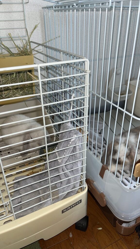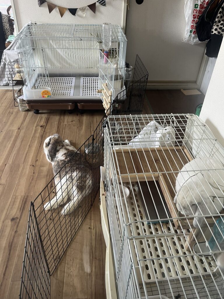 * 各うさぎが快適に過ごせるようなそれぞれケージを用意します。一つの狭い空間に多頭で暮らすことはストレスの原因となり、ケンカに繋がりやすくなります⚠️