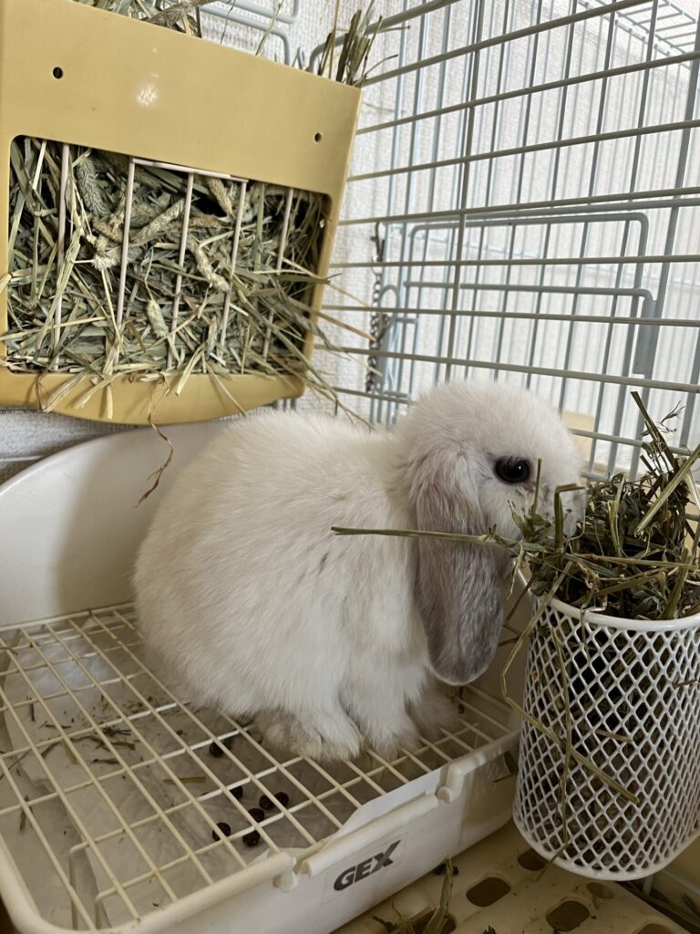* ケージ内の環境を改善する🐰: ケージ内を清潔に保ち、静かで落ち着ける環境を作りましょう。(思い当たる事はすべてやってあげましょう👍過保護っ笑)