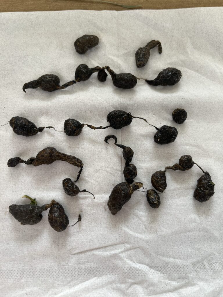 ↓が、実際の摘出した子宮の写真です。子宮に水疱のようなポコポコしたものがたくさん…。💦