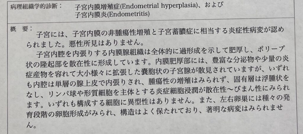 ゴットの見立てでは、病名は「子宮内膜増殖症」ではないかとのことでした。