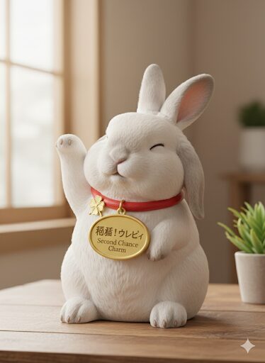 実は……最初うっかり右手で招く(金運を招くうさぎ)バージョンで作ってしまい、ブログを書きながら「あ!挙げる手が違う!」と気づいて大慌てで修正しました💦 直すのが本当に大変でしたが、AIと喧嘩と仲直りを繰り返しながら😂😂😂やっと!!!完成です。それも早く良い思い出にしたいです!笑